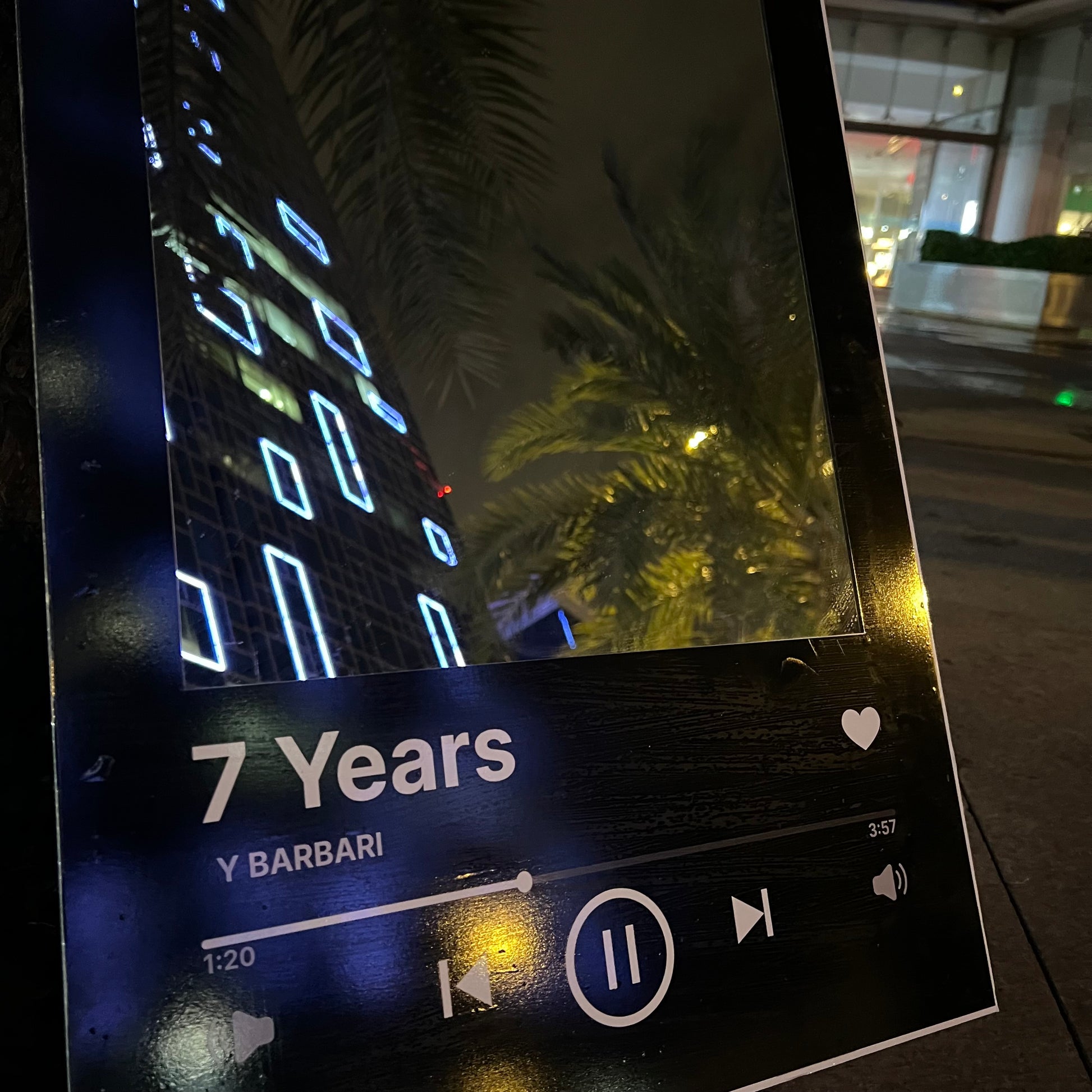 Every moment has a song, and you are the album art. This mirror captures the "Now Playing" interface, framing your reflection as the cover of your favorite track.